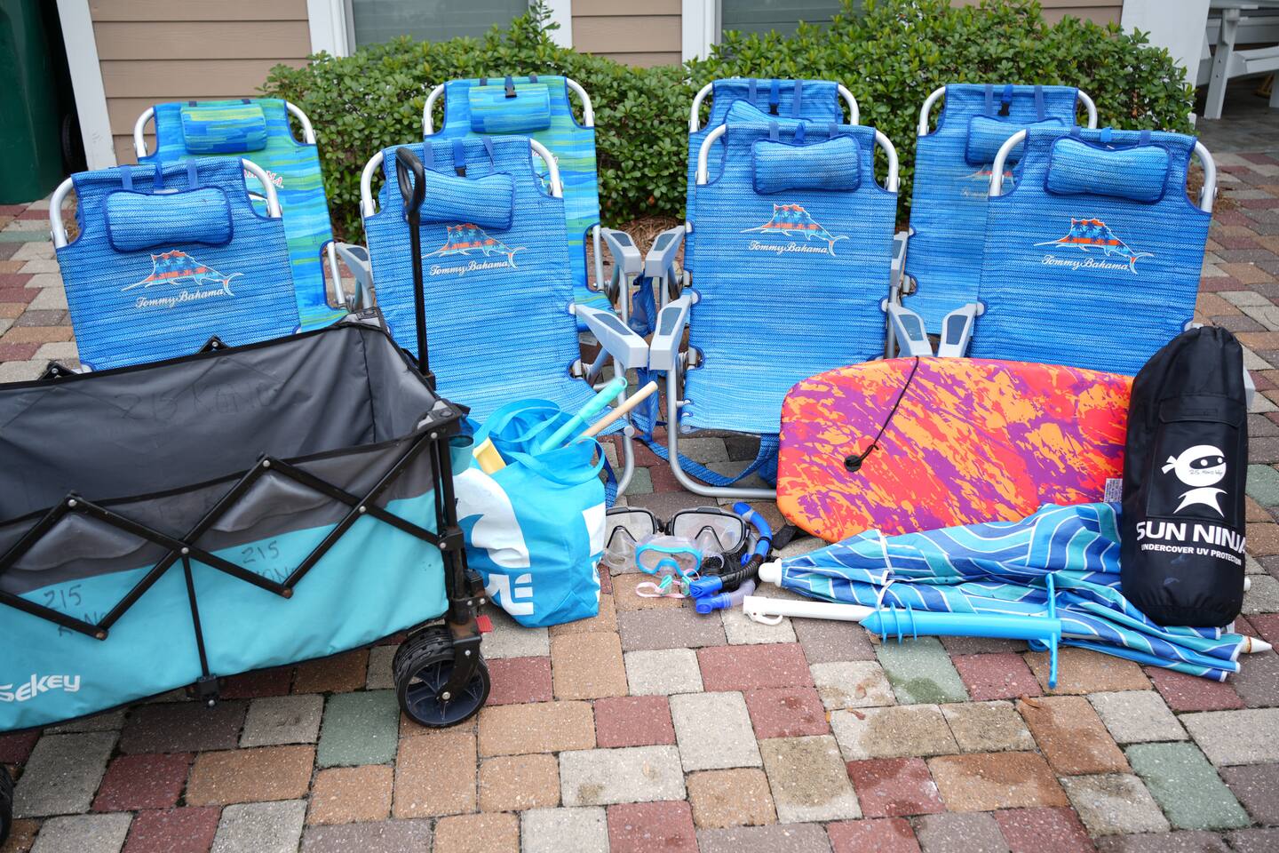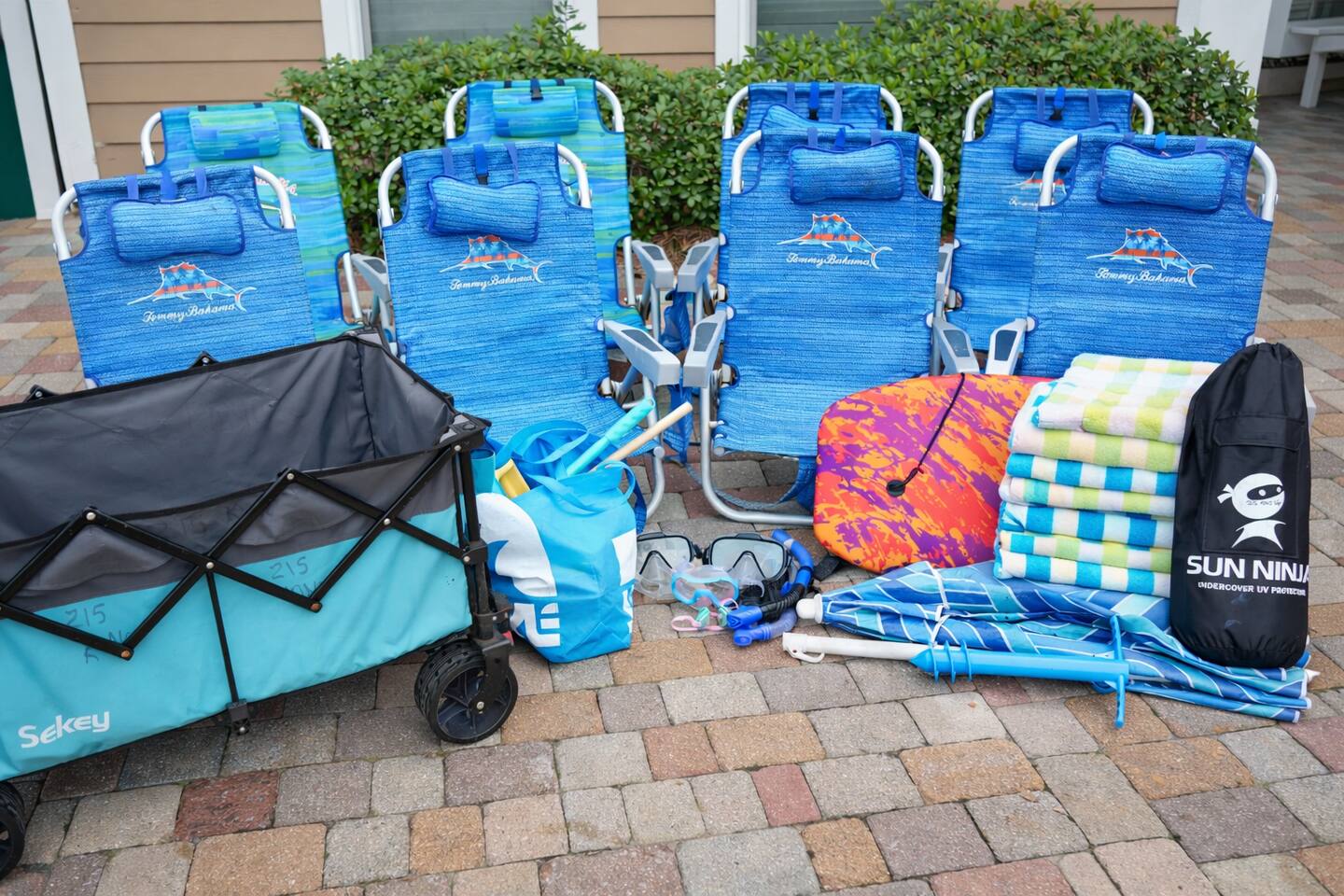 - Beach essentials Beach towels, umbrella, beach blanket, snorkeling gear
