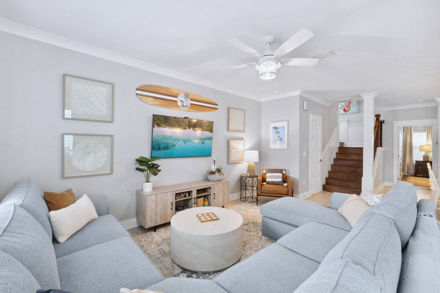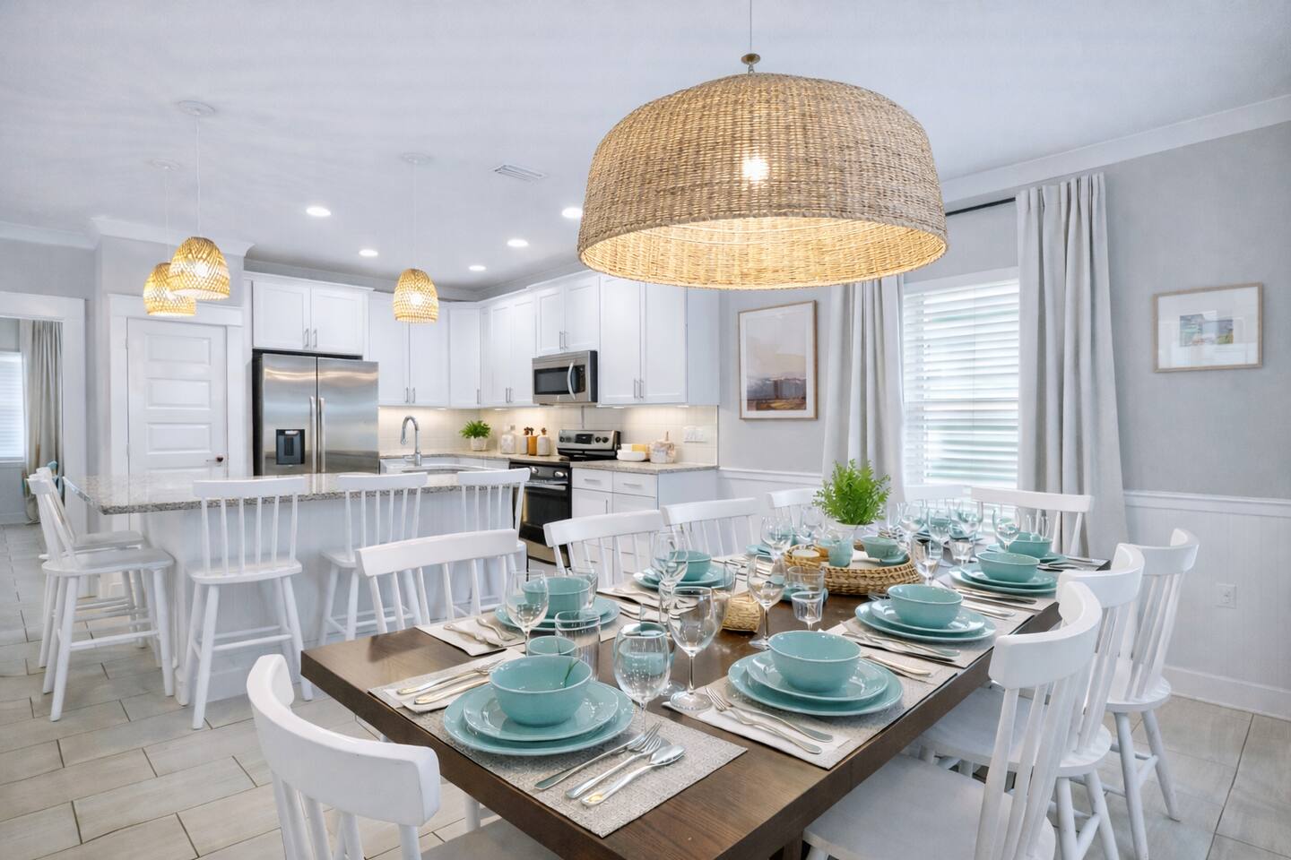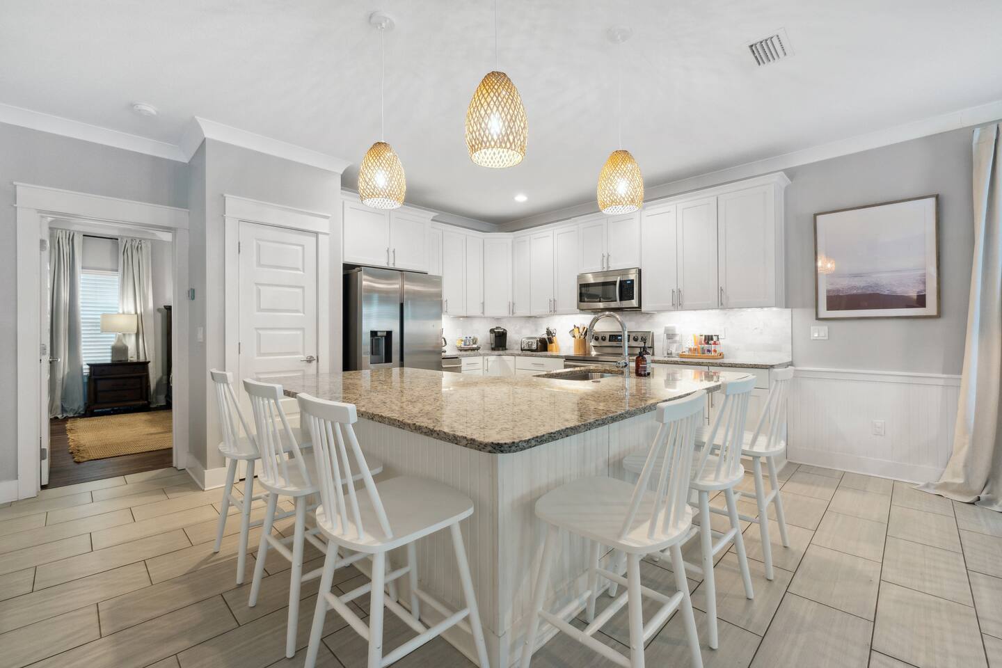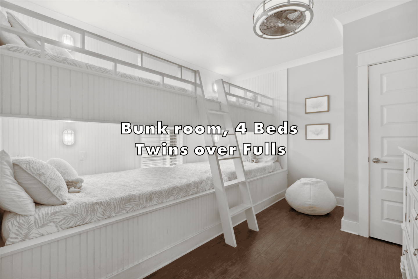 ✤ Amenities for Young Children ✤ • 2 pack-n-plays, mattresses, cotton sheets • Bumpers to help stop young kids from rolling off their bed • Gates for either end of the stairs • Removable protection for bunk room ladder to keep young kids from climbing up • Bath toys for kids, and a kids toys throughout the house • Plates, bowels, cups and cutlery for kids • A high chair, and 2 booster seats ✤ Property Amenities Include ✤ • 12 Beach Towels are provided! • Resort access to The Villages of Crystal Beach Pool • 3 Parking Spots! • All new luxury bedding and bath towels • Hotel-grade linen service, fresh and fully exchanged each stay • TVs & Roku Player in every room and common space • Kitchen stocked: Ceramic pans, bakeware, waffle maker, griddle • Ice Machine • K Cup Machine & Drip Coffee Machine - starter k-cups provided • Full Washer and Dryer - starter pack of laundry pods provided • Large kitchen island bar seating six (6) • Dining area seating ten (10) • Hair dryers in every bathroom • Resort Shampoo, Conditioner, and Body-wash provided • Starter pack of household essential (3 days) provide - toilet paper, trash bags, Laundry and Dish Pods • Bonus Exterior Beach Closet - Stocked with chairs, toys, umbrella & a small cooler. Note: this closet is on the honor system, please return what you take (or replace what you break!) ✤ Resort Amenities ✤ • The Pool is heated Mar 1 to Apr 26, Thanksgiving week, Christmas week, & New Years Week • Waterfalls, zero edge-entry, lush landscaping, and tiki bar area • Hot-tub at the pool, seats 8-10 • BBQ at the pool • Wristbands are provided to get access to the pool • Beach Shuttle runs Mar 1 to April 26, Memorial Day Weekend to Nov 1 offering BOTH Drop-off & Pick-up ✤ Proximity ✤ • Whole Foods - Across the street • Publix - 1 mile / Walmart - 2 miles • The Beach - 7 minute walk or Free Shuttle • Big Kahuna's Water Park - 10 minutes • Harborwalk Village - 12 minutes • Baytowne Wharf - 15 minutes • Fudpucker & Go Karts - 5 minutes • CrabTrap Restaurant - 3/4 mile, 5 minutes Book your stay today! ✤ Past reviews of Cute Counts raved about: ✤ ⭐⭐⭐⭐⭐- "Two families shared this beautiful home for a week over spring break. The house is up to date and has all the amenities you would ever need. The location was perfect... just a couple blocks to the ocean and near all sorts of restaurants and shopping. The pool area was great." ⭐⭐⭐⭐⭐- “This home was stunning. My family and I felt at home, as the rental property was clean, spacious and stocked with everything we needed. Great location, close to the beach, shopping and dining. Love, love, loved it!!!!” ⭐⭐⭐⭐⭐- "We stayed here a week and it was a great spot! Easy beach access, trolly was great, pool area was awesome. We had 4 adults, 2 young adults, and 2 teens. Space was great for all of us. Host was very responsive! ..." ✤ Bedrooms & Floors ✤ • 1st Floor - Open Living Room & Kitchen & Dining Room | Half-Bath | Master Bedroom & Bath & Closet • 2nd Floor - Workspace / Living Room | Upstairs Master & Bath & Closet | Bunk Room | Queen Bed & Closet | Shared Bathroom w/ Tub |Laundry Room | Balcony ✢ The Community ✢ • The Villages of Crystal Beach is a well-planned, exclusive gated community • The residences are upscale with the Mediterranean, and Old Florida style architecture, creating a relaxed laid back lifestyle. • The spectacular setting offers a romantic, classically casual, golden aura of carefree living.