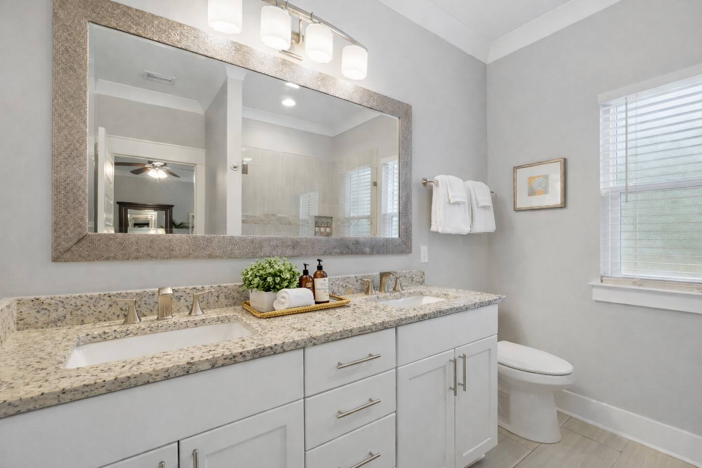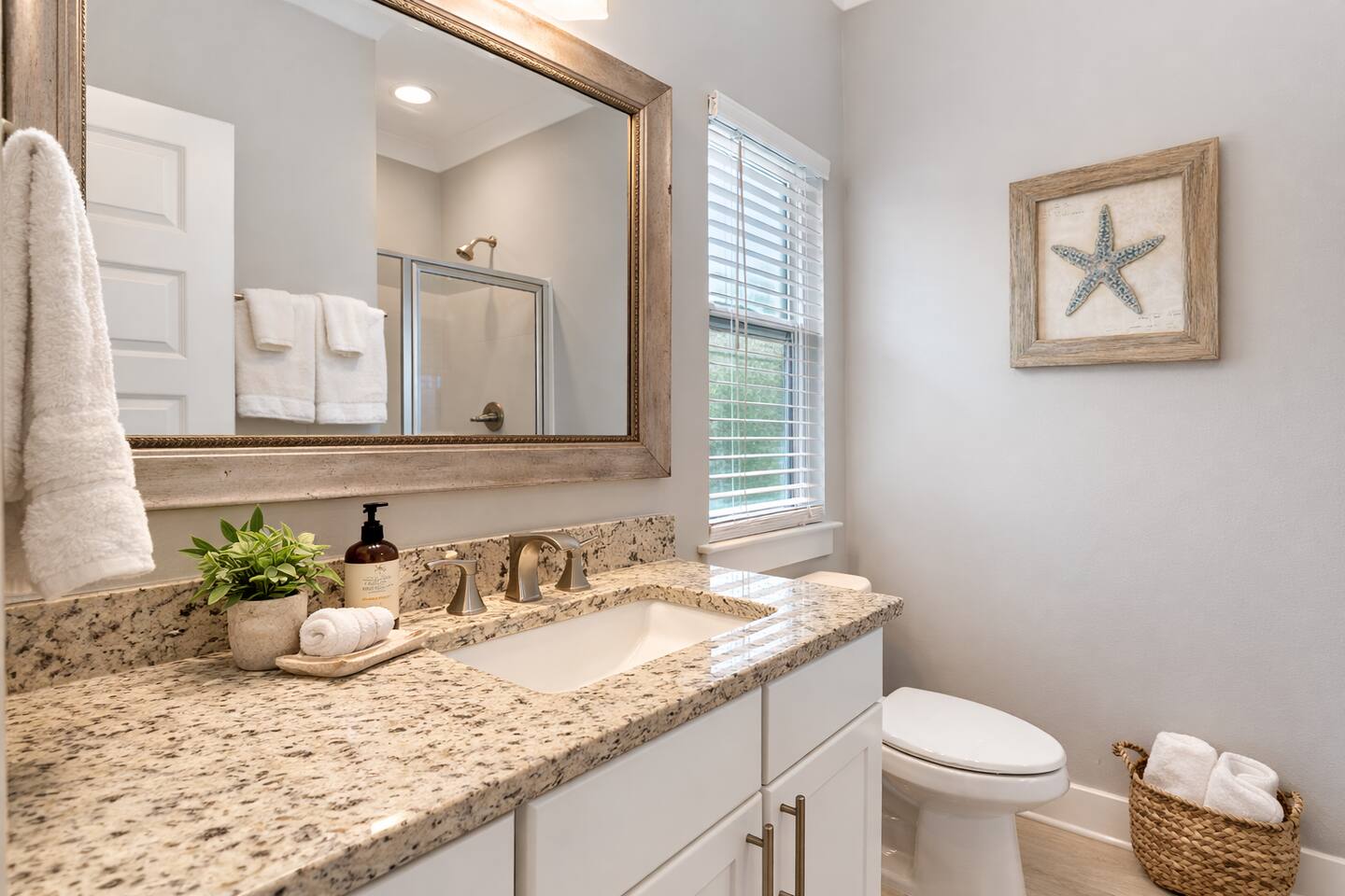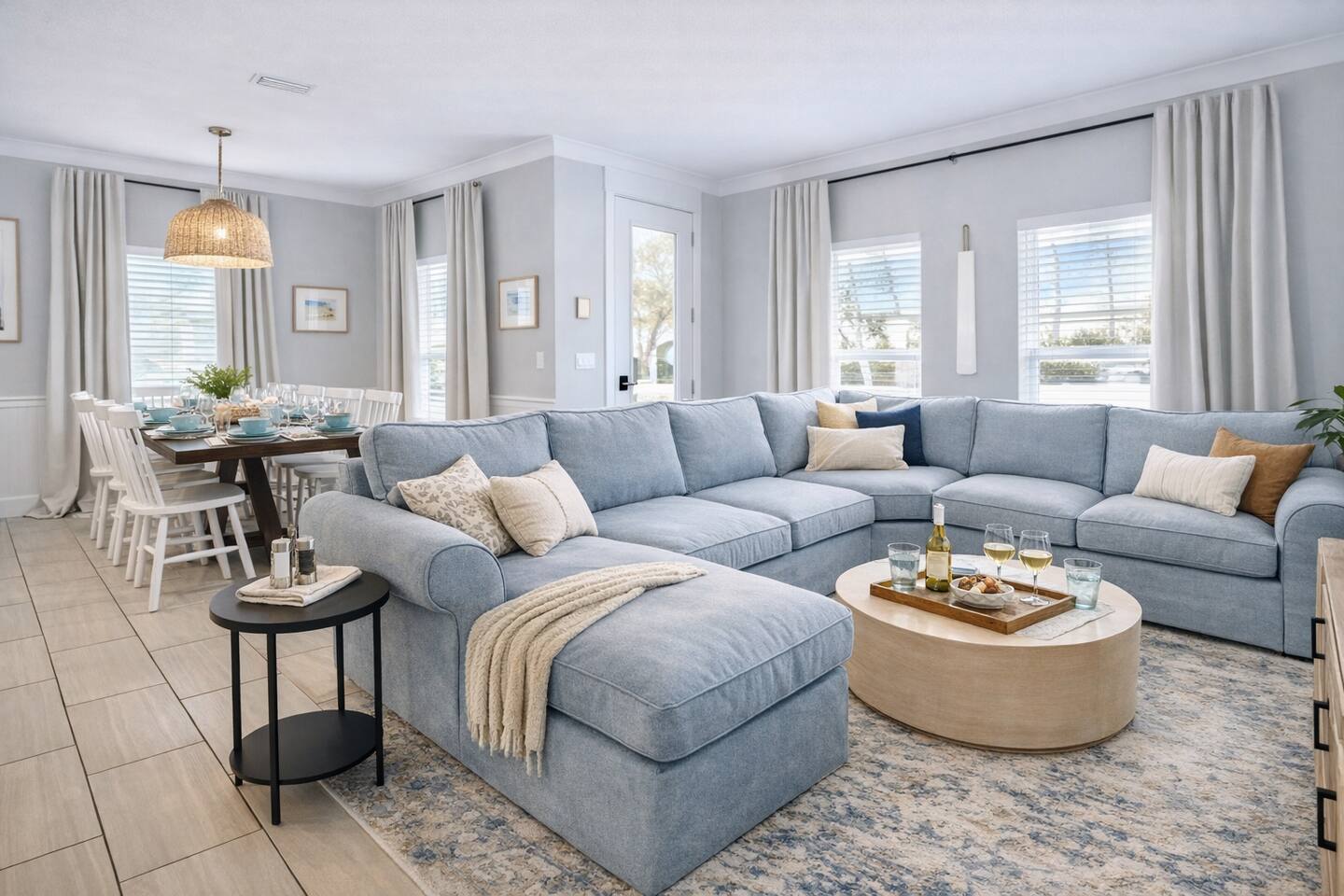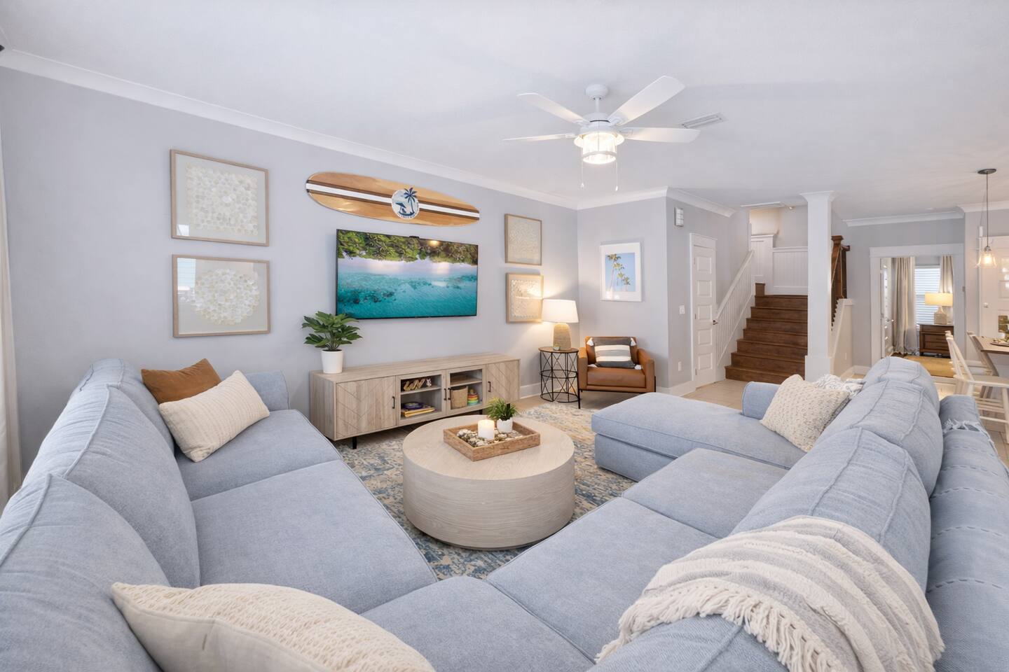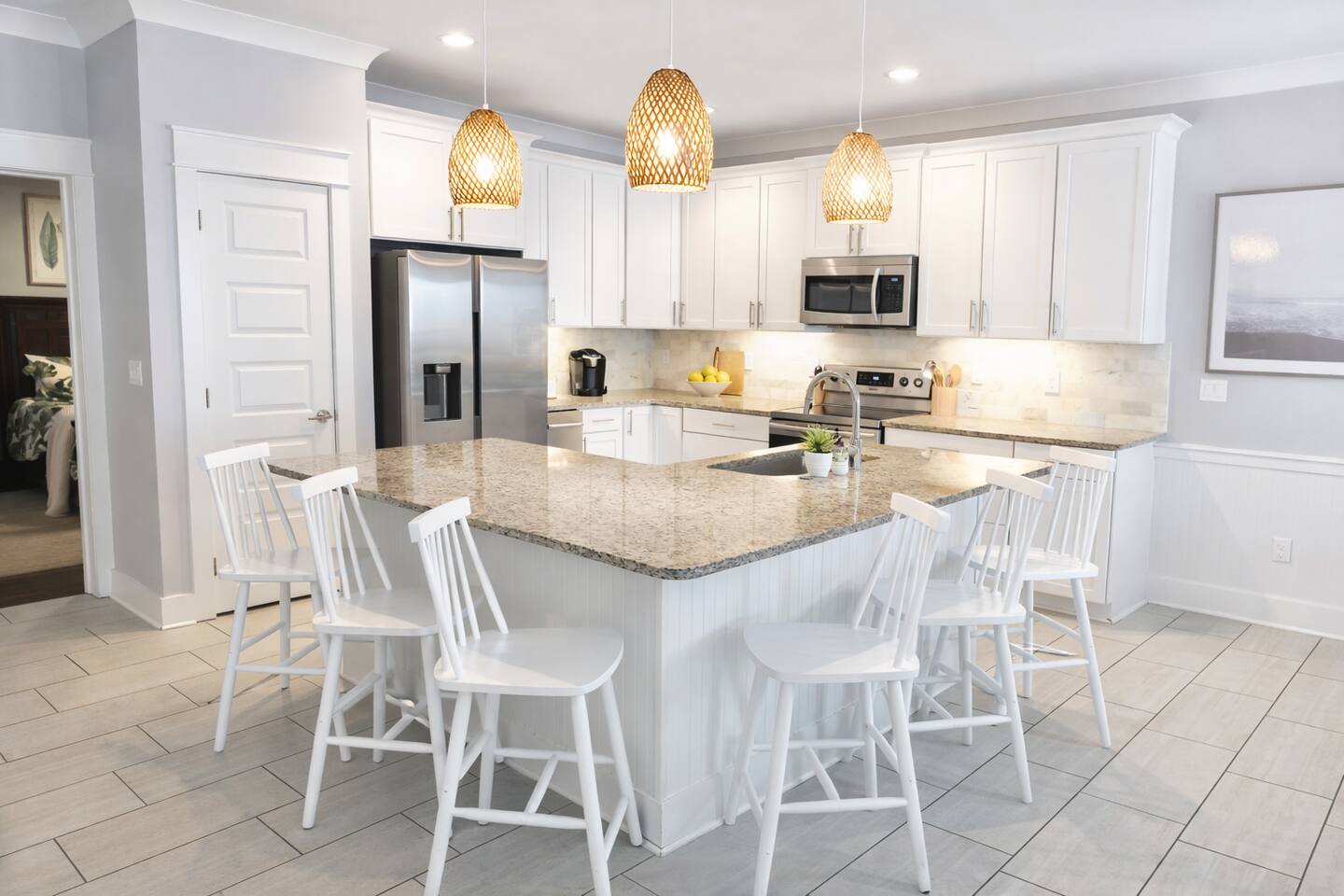 ✤ Amenities for Young Children ✤ • 2 pack-n-plays, mattresses, cotton sheets • Bumpers to help stop young kids from rolling off their bed • Gates for either end of the stairs • Removable protection for bunk room ladder to keep young kids from climbing up • Bath toys for kids, and a kids toys throughout the house • Plates, bowels, cups and cutlery for kids • A high chair, and 2 booster seats ✤ Property Amenities Include ✤ • 12 Beach Towels are provided! • Resort access to The Villages of Crystal Beach Pool • 3 Parking Spots! • All new luxury bedding and bath towels • Hotel-grade linen service, fresh and fully exchanged each stay • TVs & Roku Player in every room and common space • Kitchen stocked: Ceramic pans, bakeware, waffle maker, griddle • Ice Machine • K Cup Machine & Drip Coffee Machine - starter k-cups provided • Full Washer and Dryer - starter pack of laundry pods provided • Large kitchen island bar seating six (6) • Dining area seating ten (10) • Hair dryers in every bathroom • Resort Shampoo, Conditioner, and Body-wash provided • Starter pack of household essential (3 days) provide - toilet paper, trash bags, Laundry and Dish Pods • Bonus Exterior Beach Closet - Stocked with chairs, toys, umbrella & a small cooler. Note: this closet is on the honor system, please return what you take (or replace what you break!) ✤ Resort Amenities ✤ • The Pool is heated Mar 1 to Apr 26, Thanksgiving week, Christmas week, & New Years Week • Waterfalls, zero edge-entry, lush landscaping, and tiki bar area • Hot-tub at the pool, seats 8-10 • BBQ at the pool • Wristbands are provided to get access to the pool • Beach Shuttle runs Mar 1 to April 26, Memorial Day Weekend to Nov 1 offering BOTH Drop-off & Pick-up ✤ Proximity ✤ • Whole Foods - Across the street • Publix - 1 mile / Walmart - 2 miles • The Beach - 7 minute walk or Free Shuttle • Big Kahuna's Water Park - 10 minutes • Harborwalk Village - 12 minutes • Baytowne Wharf - 15 minutes • Fudpucker & Go Karts - 5 minutes • CrabTrap Restaurant - 3/4 mile, 5 minutes Book your stay today! ✤ Past reviews of Cute Counts raved about: ✤ ⭐⭐⭐⭐⭐- "Two families shared this beautiful home for a week over spring break. The house is up to date and has all the amenities you would ever need. The location was perfect... just a couple blocks to the ocean and near all sorts of restaurants and shopping. The pool area was great." ⭐⭐⭐⭐⭐- “This home was stunning. My family and I felt at home, as the rental property was clean, spacious and stocked with everything we needed. Great location, close to the beach, shopping and dining. Love, love, loved it!!!!” ⭐⭐⭐⭐⭐- "We stayed here a week and it was a great spot! Easy beach access, trolly was great, pool area was awesome. We had 4 adults, 2 young adults, and 2 teens. Space was great for all of us. Host was very responsive! ..." ✤ Bedrooms & Floors ✤ • 1st Floor - Open Living Room & Kitchen & Dining Room | Half-Bath | Master Bedroom & Bath & Closet • 2nd Floor - Workspace / Living Room | Upstairs Master & Bath & Closet | Bunk Room | Queen Bed & Closet | Shared Bathroom w/ Tub |Laundry Room | Balcony ✢ The Community ✢ • The Villages of Crystal Beach is a well-planned, exclusive gated community • The residences are upscale with the Mediterranean, and Old Florida style architecture, creating a relaxed laid back lifestyle. • The spectacular setting offers a romantic, classically casual, golden aura of carefree living.